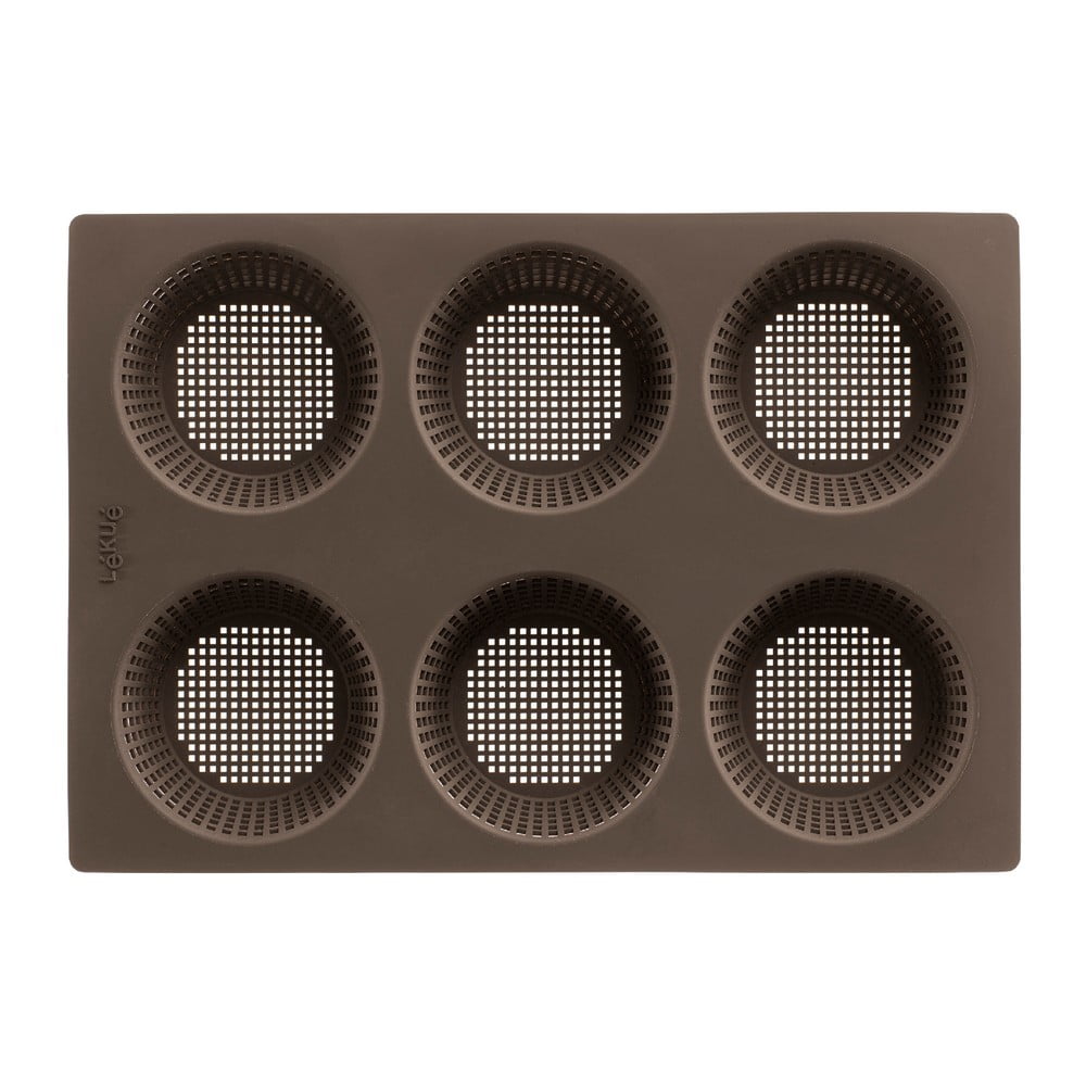 Termékleírás 6 rekeszes barna szilikon zsemle sütőforma - Lékué