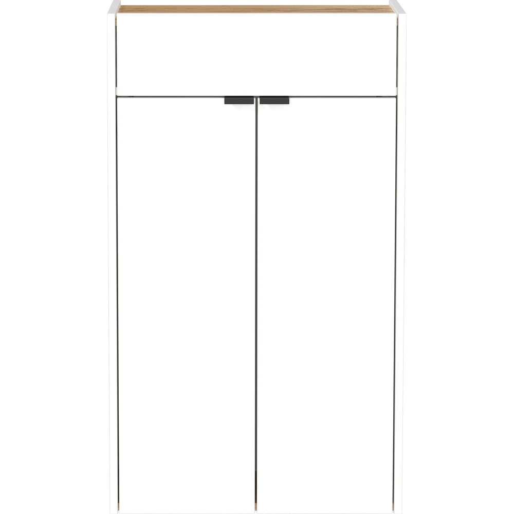 Termékleírás Fehér fiókos cipőtartó tölgyfa dekorral Ameca – Germania
